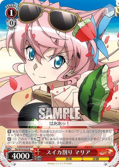 【永】 あなたのターン中、他のあなたのカード名に「クリス」か「マリア」を含むキャラすべてに、パワーを+1000。