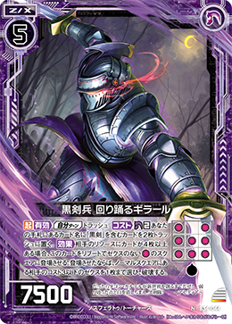 トラッシュあなたの手札にあるカード名に「黒剣」を含むカードを2枚トラッシュに置く。相手のリソースにカードが4枚以上ある場合、このカードをリブートでゼクスのない◎のスクエアに登場させる。登場させたならば、ノーマルスクエアにある相手のコスト3以下のゼクスを1枚まで選び、破壊する。
